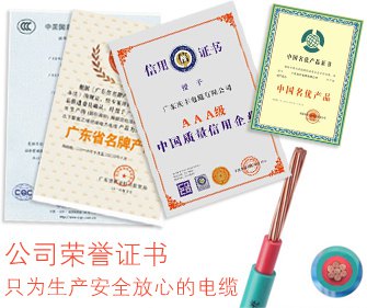公司先后獲得CCC認(rèn)證,廣東省名牌,中國名優(yōu)產(chǎn)品,中國質(zhì)量信用企業(yè),環(huán)境標(biāo)志產(chǎn)品認(rèn)證證書,計(jì)量體系認(rèn)證,全國守合同重信用單位,質(zhì)量管理體系認(rèn)證,高新技術(shù)企業(yè),質(zhì)量過硬放心品牌,全國消費(fèi)者信得過產(chǎn)品,阻燃制品標(biāo)識使用證書,中國綠色環(huán)保產(chǎn)品等證書,廣東慶豐電纜為您的安全保駕護(hù)航.